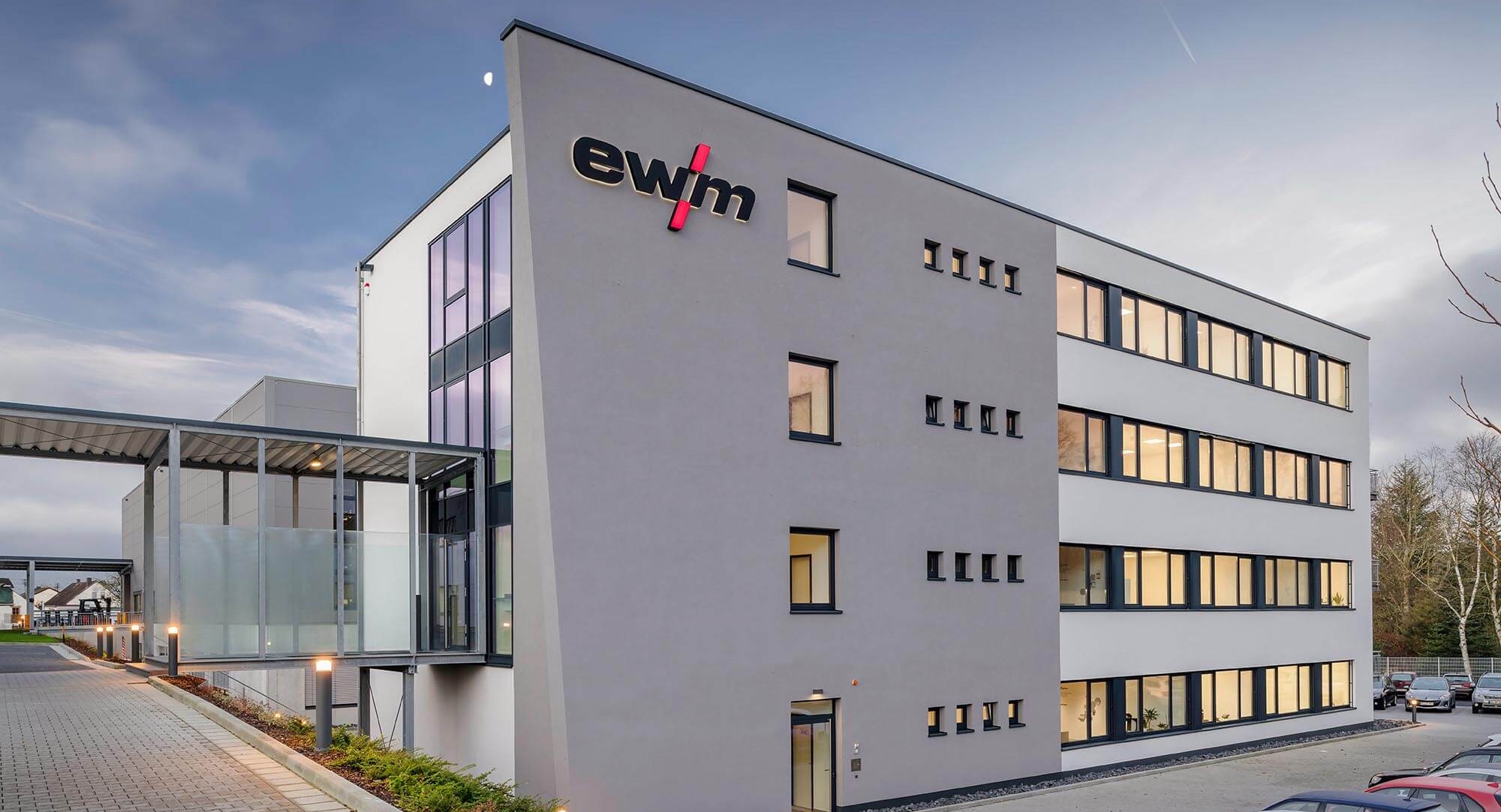 EWM hat großen Wert auf die Innenraumgestaltung gelegt, um den Mitarbeiterinnen und Mitarbeitern ein möglichst ansprechendes Arbeitsumfeld zu bieten. Alle vier Geschosse sind baugleich ausgeführt und umfassen Büros, Besprechungsbereiche, Teeküchen sowie Sanitärräume. Zu Beginn der Planungsphase besichtigten die Entscheider von EWM das KLEUSBERG Verwaltungsgebäude in Wissen und zeigten sich begeistert. Einige Gestaltungsparameter dieser Referenz wurden daher übernommen. So dienen offene Kommunikationszonen auf den Fluren für kurze Besprechungen oder Abstimmungen unter Kollegen, schmale Fensterelemente neben den Türen ermöglichen Sichtbeziehungen zwischen Flur und Büro. „In unserem neuen Verwaltungsgebäude geben wir den Mitarbeitern einerseits die Möglichkeit konzentriert und in Ruhe zu arbeiten. Andererseits haben wir aber auch genügend Raum für den produktiven Informationsaustausch geschaffen. Das ist eine gelungene Lösung”, erklärt Bernd Szczesny, Vorstandsvorsitzender der EWM AG in einem eigenen Pressebericht.
