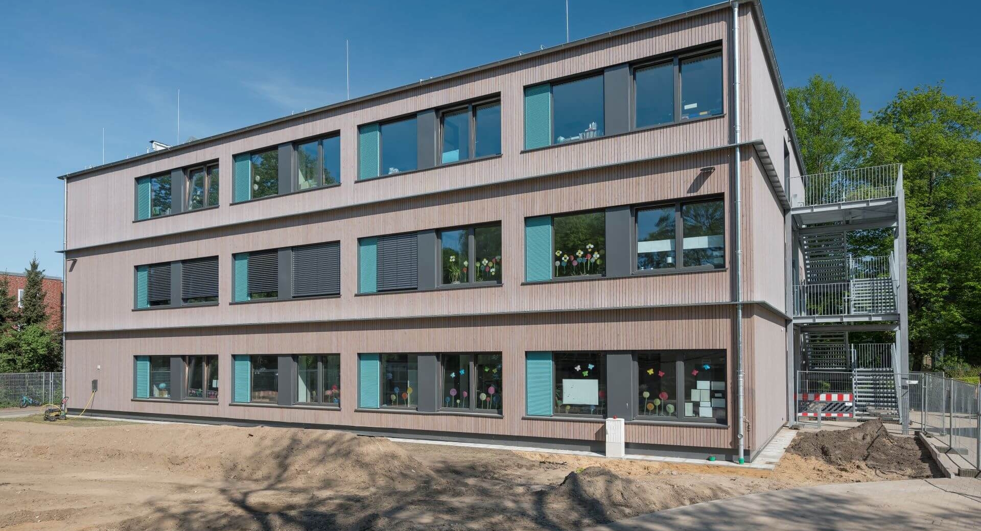 Das Hamburger Klassenhaus ist ein Schritt in den modernen Bildungsbau. Schnell errichtet und effizient in der Nutzung von begrenztem Raum. So entstand ein weiteres Hamburger Klassenhaus – die Grundschule Bindfeldweg, um der steigenden Nachfrage nach qualitativ hochwertiger Bildung und einem umfassenden Ganztagsangebot gerecht zu werden.
