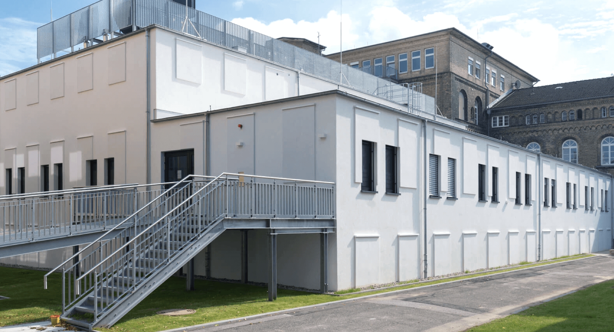 Mit der neuen Einrichtung sollen künftig Patienten, bei denen der Verdacht auf eine Infektionserkrankung besteht, besser isoliert werden können, um das Risiko von Keimübertragungen zu minimieren. Durch die moderne Infrastruktur sollen auch die Wege der Krankenversorgung verkürzt und Therapiemöglichkeiten optimiert werden. Das Modulgebäude und die bestehende Intensivstation sind im Erdgeschoss miteinander verbunden, um eine effiziente medizinische Versorgung zu ermöglichen. Die Geräteausstattung der Station befindet sich auf neuestem technischem Stand und erlaubt es, die Funktion einzelner Organe zu unterstützen oder zu ersetzen (Herz-Lungen-Ersatzverfahren, Leberersatzverfahren, Dialyse). So können alle Arten von schweren internistischen Erkrankungen optimal intensivmedizinisch behandelt werden. Die Fassadengestaltung gleicht der des ebenfalls von KLEUSBERG errichteten Herzkathetermessplatzes auf dem Campus und schafft ein einheitliches Gesamtbild. Punktuell vorspringende Fassadenflächen unterstreichen dabei die Architektur des Gebäudes.